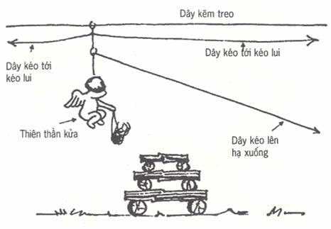 Lưu ý: nên sử dụng dây cước làm dây điều chỉnh qua lại và lên xuống để mọi người không thấy, nhưng đoạn nối vào thiên thần lửa thì bằng dây kẽm.