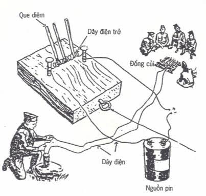 1. Dùng vải quấn quanh một cành cây tươi, lấy dây kẽm buộc lại, nhúng vào dầu lửa. Cách rày giản dị nhưng lửa cháy không bền.
