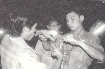 5. Dùng hai rắm lá dừa già khô trở đầu nhau, buộc bằng 3,4 nút lại. Khi thắp, các bạn đốt từ đầu và khẽ quơ nhẹ cho lửa bùng lên.