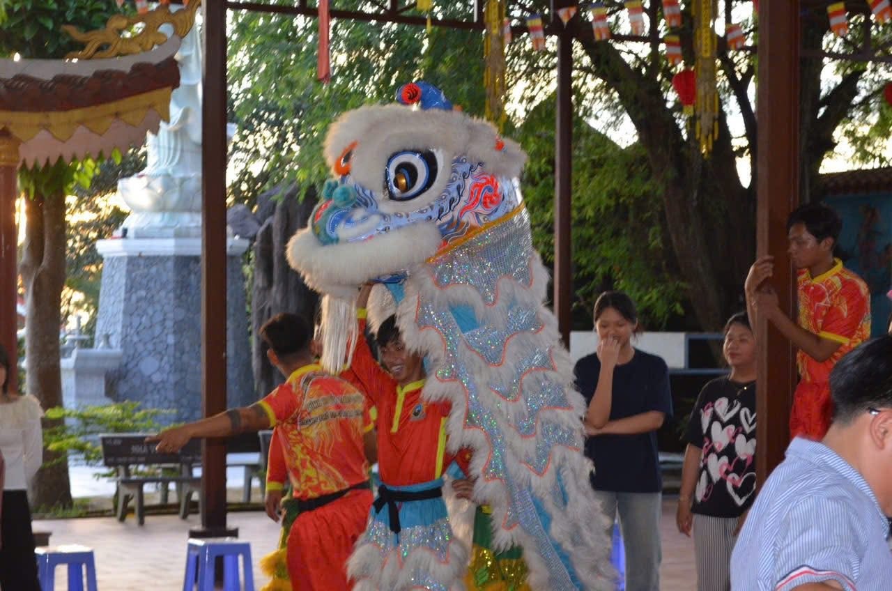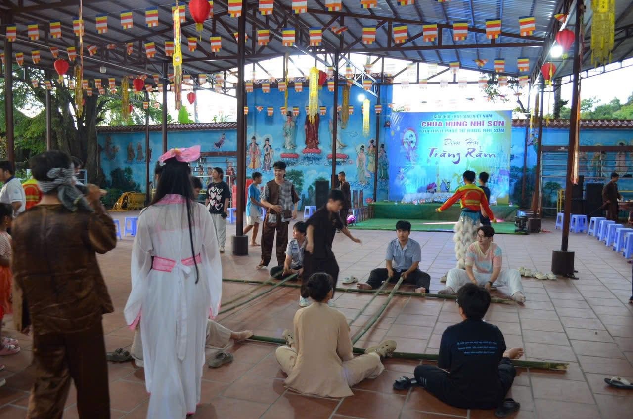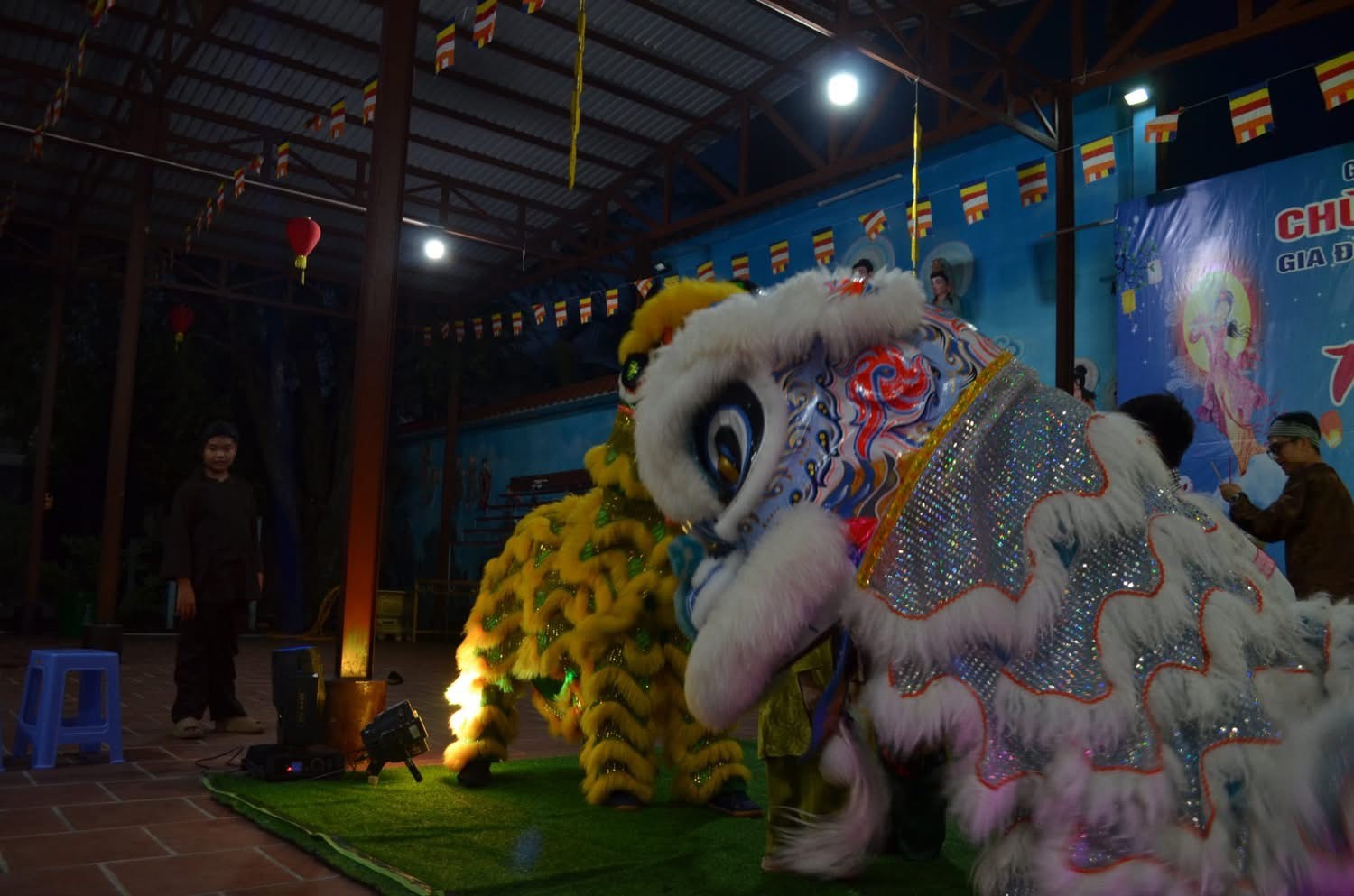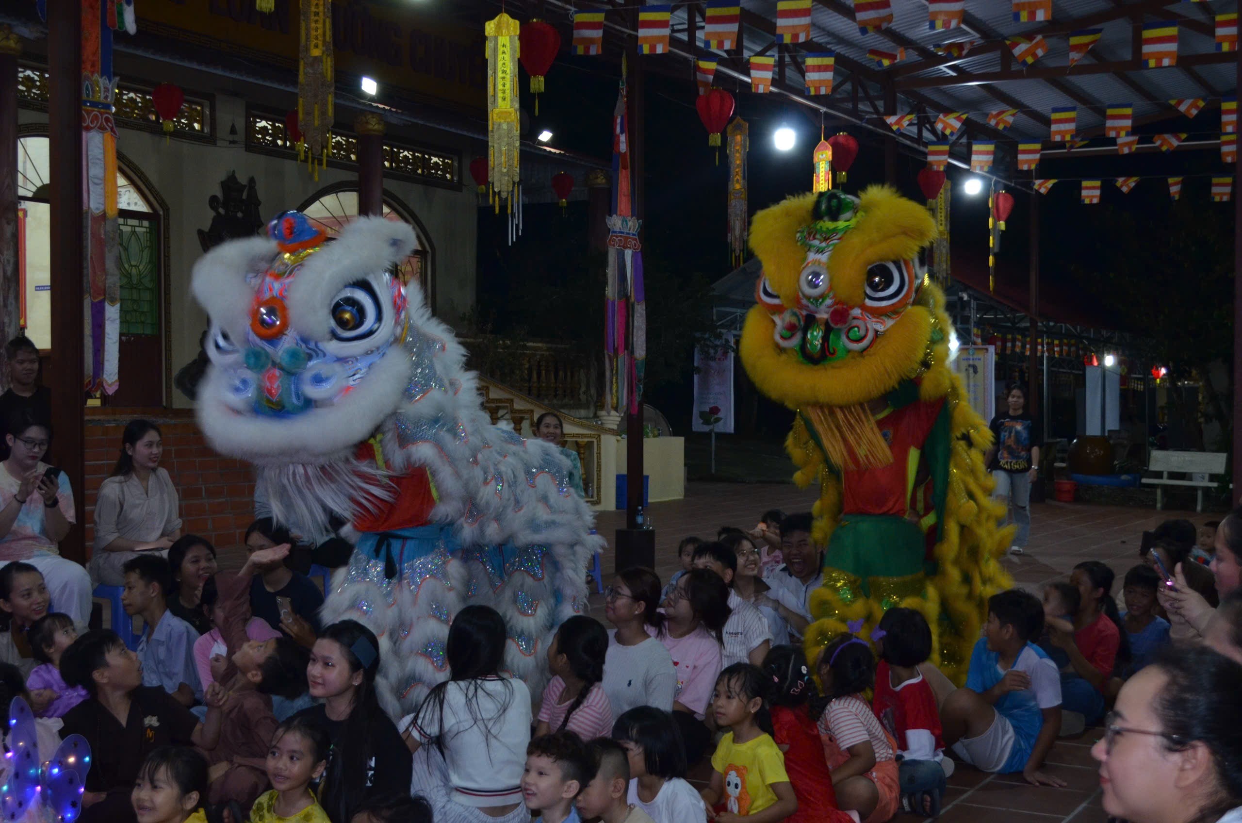 Không khí đêm hội thêm phần rộn ràng với màn trống hội – múa lân và những tiết mục văn nghệ do các em trong Gia đình Phật tử Hùng Nhĩ Sơn biểu diễn. Đặc biệt, phần kể chuyện Phật giáo “Sự tích Chú Cuội” đã mang đến cho các em nhỏ và quý Phật tử những bài học ý nghĩa về lòng nhân ái, tâm hiếu hạnh và niềm tin nhân quả trong giáo lý nhà Phật.