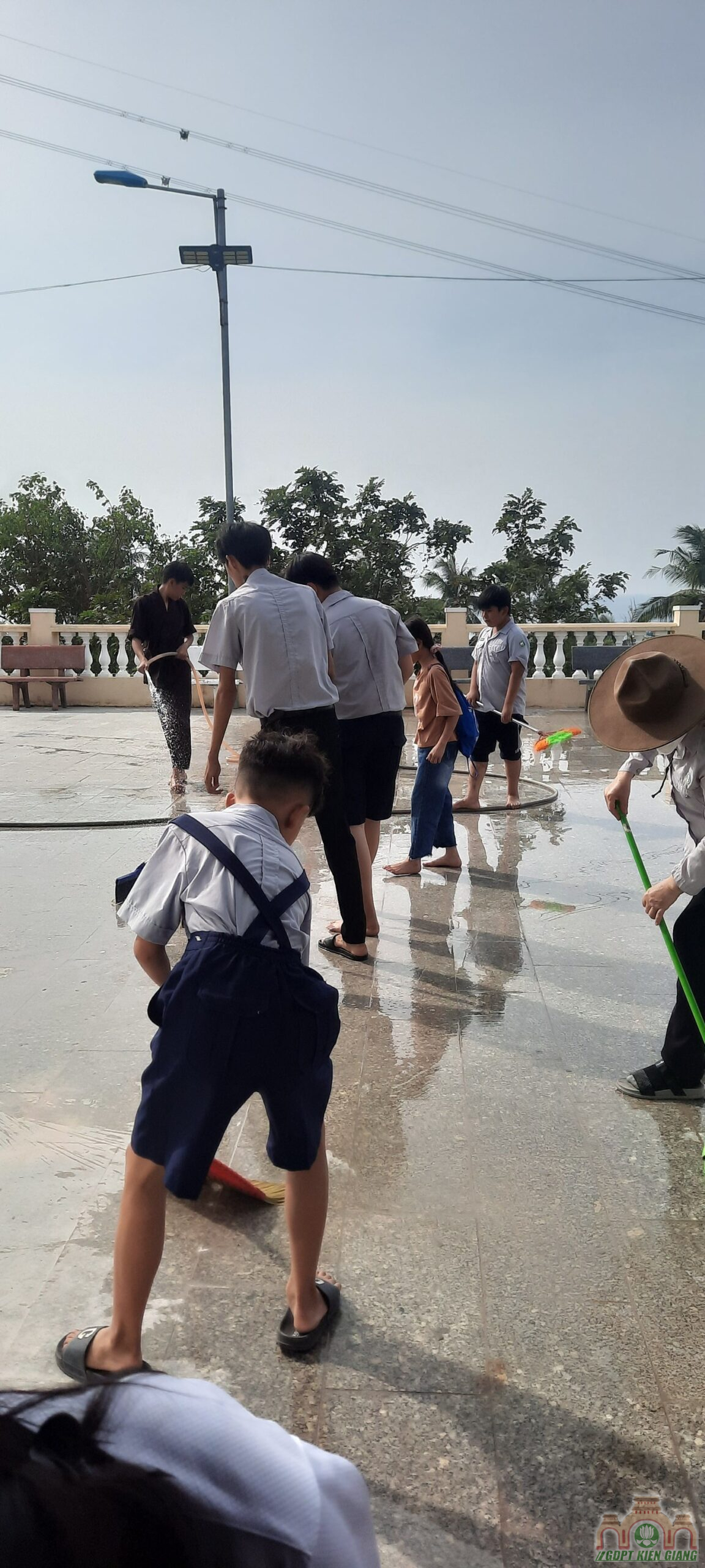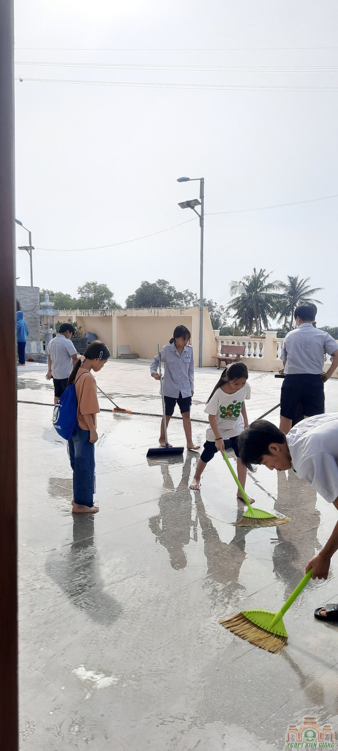 Ngay sau tiệc tất niên, các thành viên Gia Đình Phật Tử Sùng Đức đã cùng nhau tổ chức một buổi tổng vệ sinh chùa. Mọi người đã chung tay lau chùi và trang trí lại chùa để tạo nên một không gian sạch sẽ, tinh khôi và trang nghiêm đón chào năm mới.