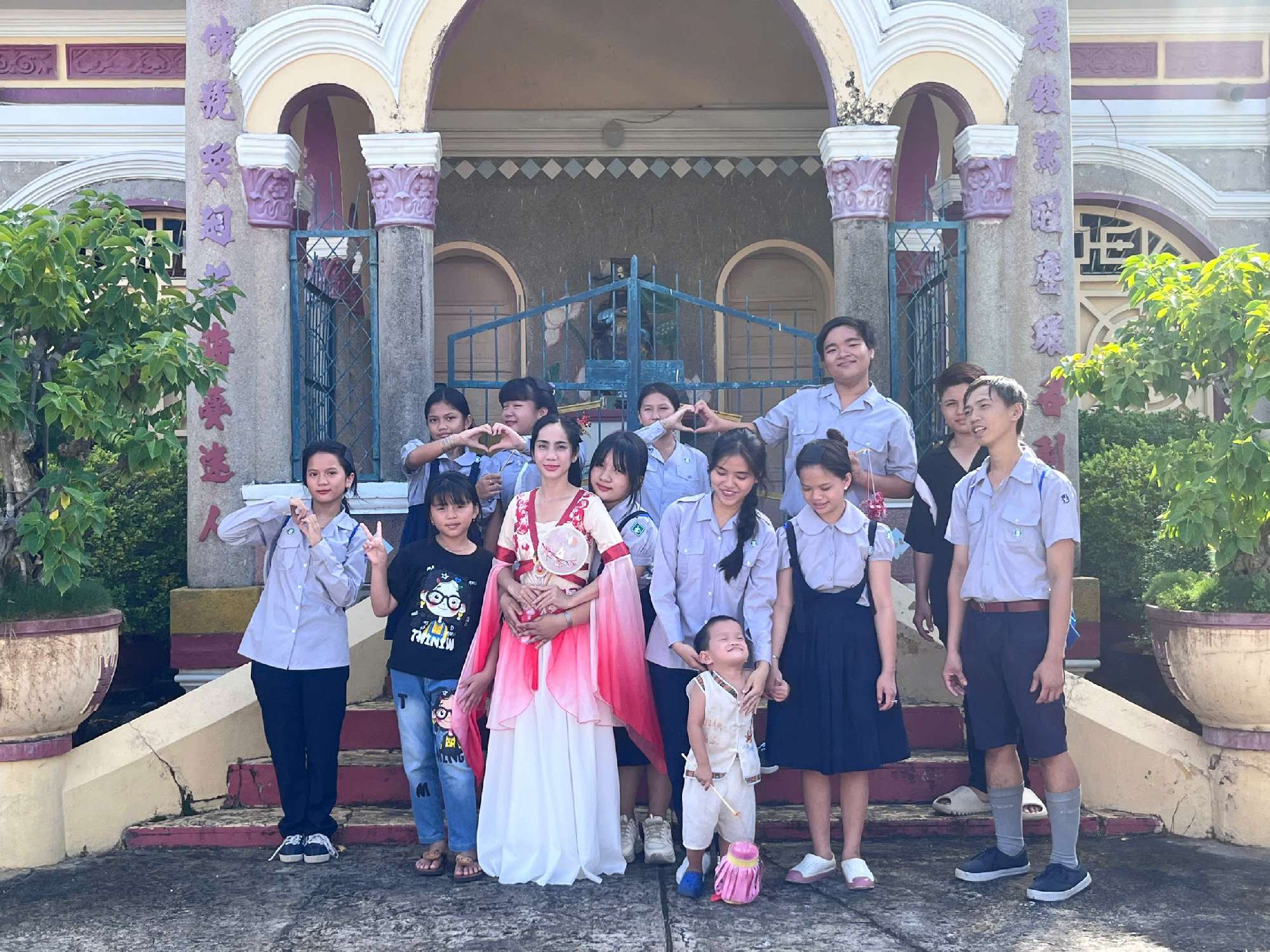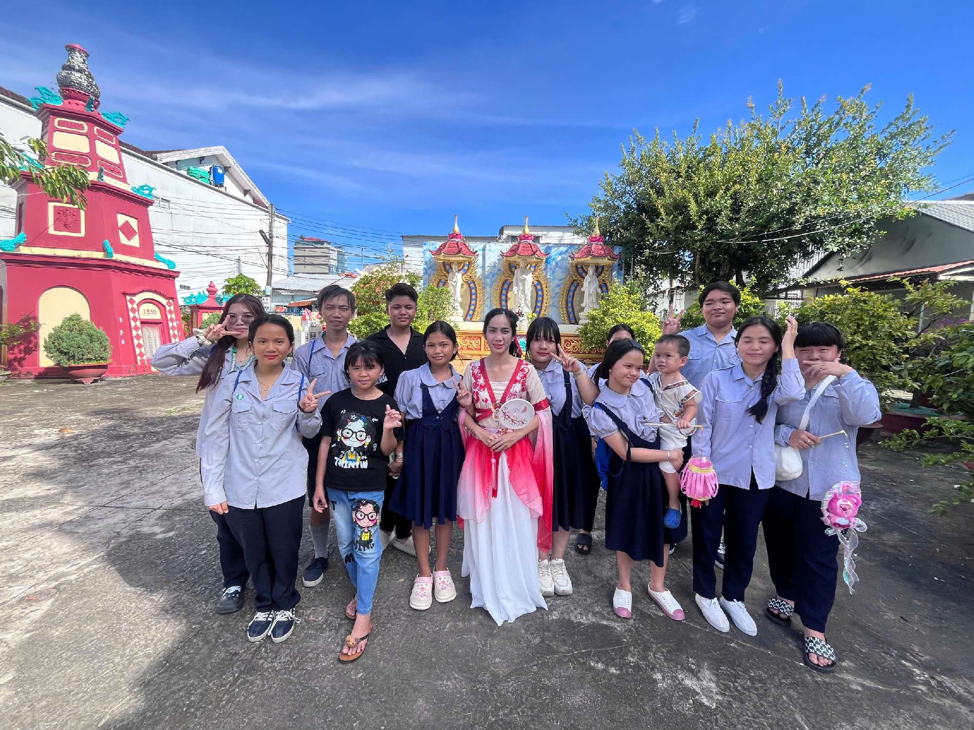 Khi buổi sinh hoạt tiếp tục, đơn vị cùng nhau chụp ảnh lưu niệm. Tiếng cười rộn ràng vang lên khi mọi người được chụp chung với chị Hằng và chú Cuội. Giữa khung cảnh thanh tịnh của chùa, những bức ảnh ấy như ghi lại khoảnh khắc hồn nhiên, vui tươi, nhưng vẫn thấm đượm tinh thần đạo vị.