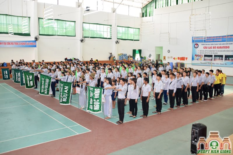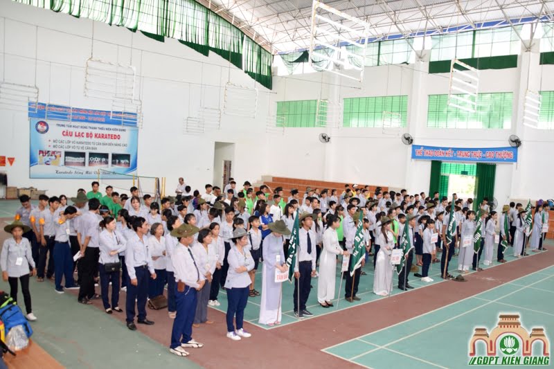 Đúng 8 giờ sáng, lễ khai mạc hội thao chính thức được tổ chức tại hội trường đa năng Trung Tâm Hoạt Động Thanh Thiếu Niên tỉnh Kiên Giang.