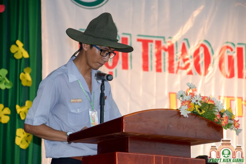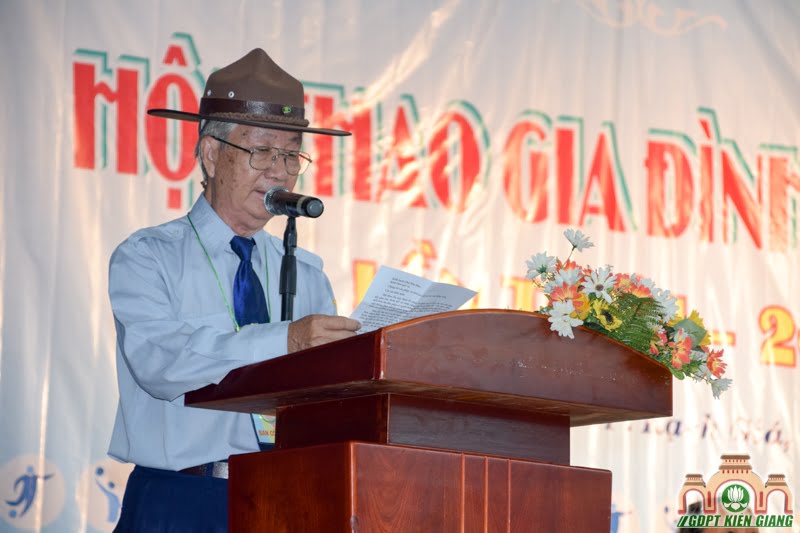 Phát biểu khai mạc, Huynh Trưởng cấp Tấn Minh Kim Quách Văn Thành, Trưởng Ban Tổ Chức nêu bật ý nghĩa quan trọng của các hoạt động thể dục thể thao trong giáo dục của Gia Đình Phật Tử.