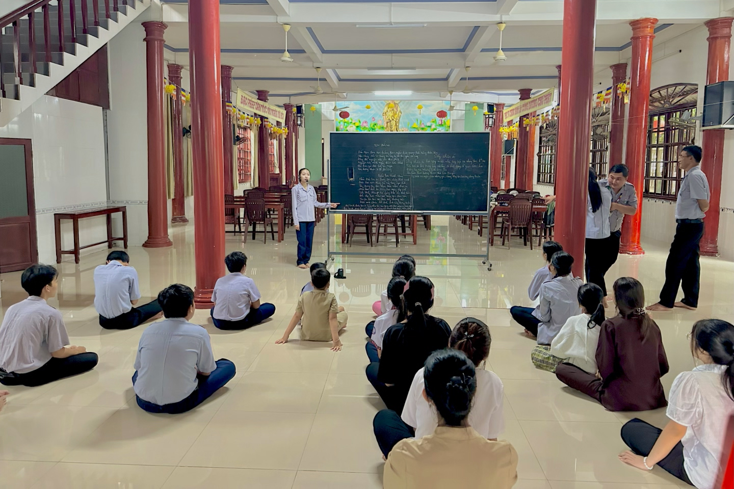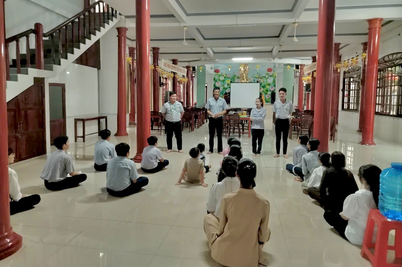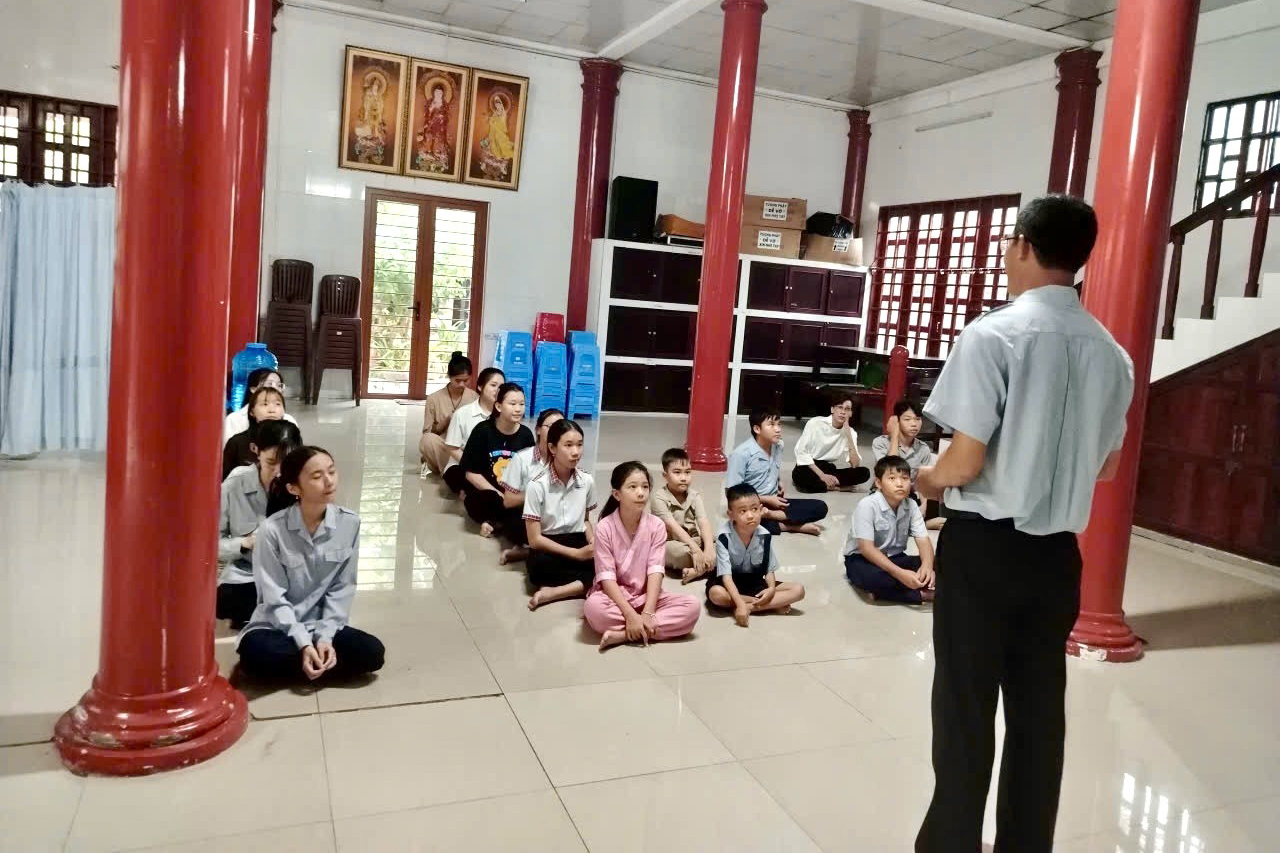 Buổi sinh hoạt mở đầu bằng lễ Phật trang nghiêm, toàn thể huynh trưởng và đoàn sinh cùng nhau niệm Phật, hát Sen Trắng và lắng nghe lời sách tấn về ý nghĩa của màu áo lam, tinh thần đoàn kết, và trách nhiệm khi sinh hoạt GĐPT. Đây không chỉ là nghi thức đầu buổi, mà còn là khoảnh khắc lắng lại, nhắc nhở mỗi người gìn giữ tâm trong sáng và lòng nhiệt huyết trên bước đường tu học.