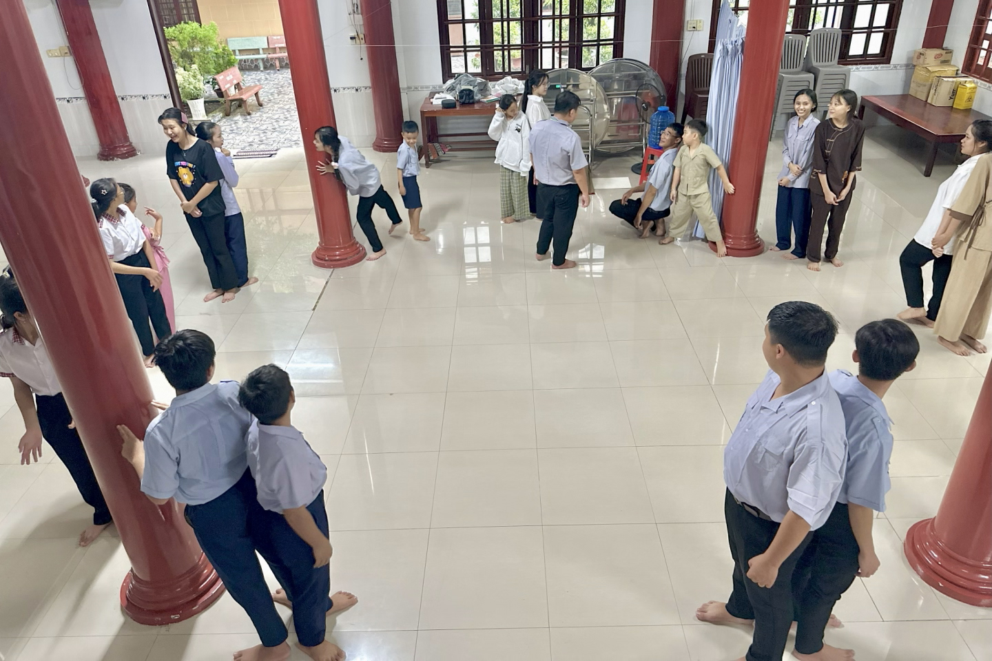 Tiếp đó, là phần sinh hoạt chung với những trò chơi và tiếng ca đã làm nóng không khí. Những bài hát sinh hoạt quen thuộc vang lên như nhịp vỗ tay, tiếng hò reo, và những vòng tròn đoàn kết khiến khoảng sân như nhỏ lại trong tình thân. Các trò chơi tập thể không chỉ đem lại tiếng cười mà còn giúp các em rèn luyện sự nhanh nhẹn, phối hợp, và tinh thần đồng đội.