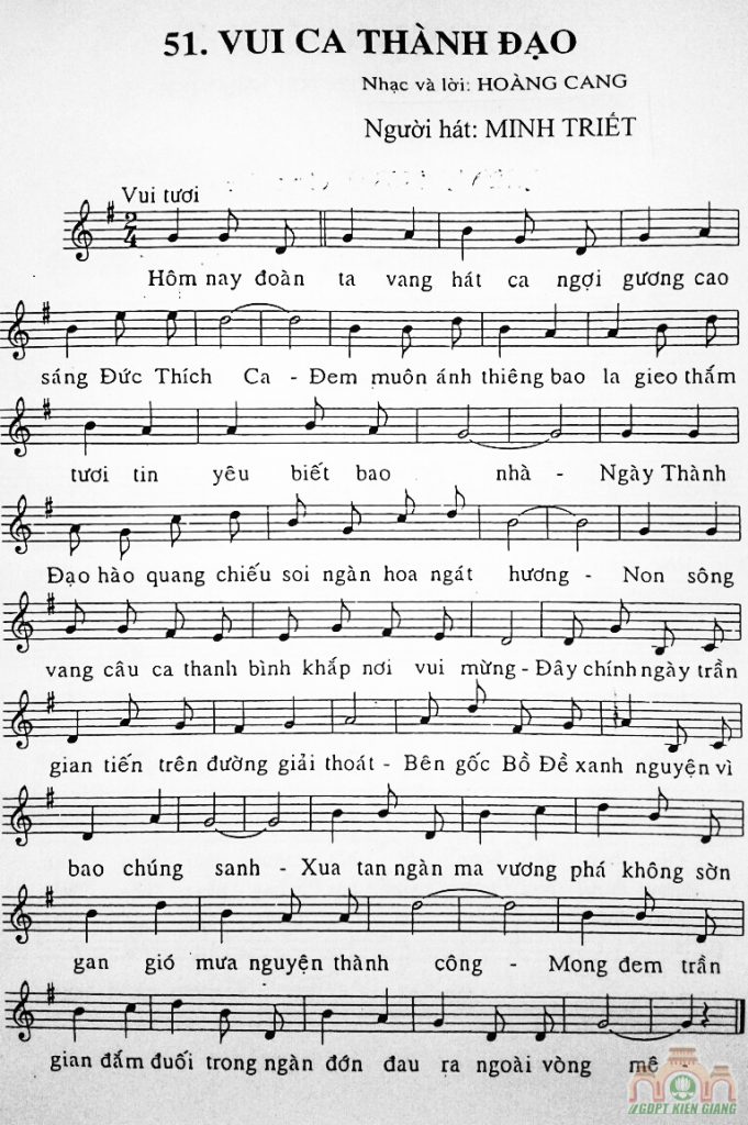 Nhạc phẩm Vui Ca Thành Đạo được trích từ 134 Ca Khúc GĐPT Do Minh Kim Sưu Tầm, Ký Âm, Hòa Âm Và Thu Âm Lời Hát